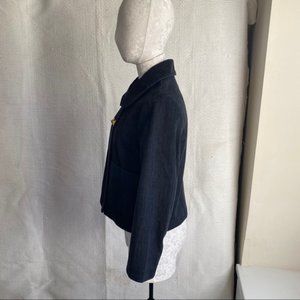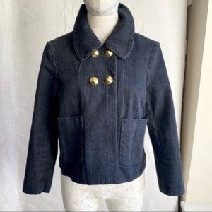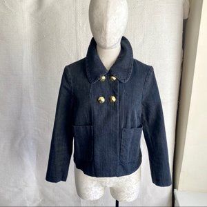 3.1 Phillip Lim grey or light black stretch jean jacket shrunken / cropped pea coat double breasted babydoll style. Gold cone studs buttons for edgy sweet rock & roll look. Front pockets, lined, back vent. Versatile year round weight for layering. EUC.