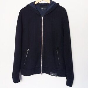 3.1 Phillip Lim Men's XL Bonded 2 Way Zip Front Hoodie Sweatshirt Jacket Black