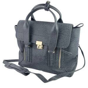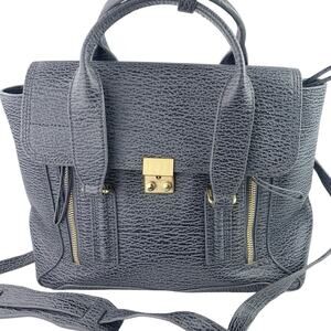 3.1 Phillip Lim Pashli Medium Black Gold Leather Satchel Crossbody Handbag OS