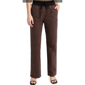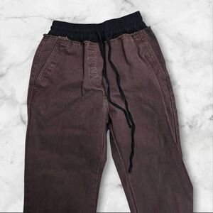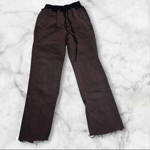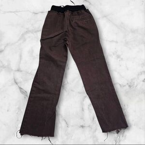 Heavyweight, non-stretch denim. Covered elastic waistband. Slant hip pockets and welt back pockets.