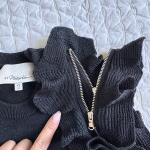 3.1 Phillip Lim Ruffle Knit Crop Top with Ruffle Zipper Detail in Black