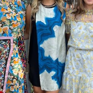 3.1 Phillip Lim Silk Dress with Chain Neckline - Blue/White/Black, size 6