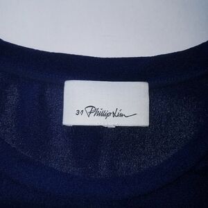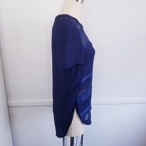 🌸 3.1 Phillip Lim | Silk Navy Stripe Curved Hem Top, Medium