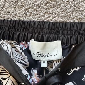 note: garment tag is missing - another listing says 100% silk body / 100% polyester trim / 90% viscose 10% elastane rib