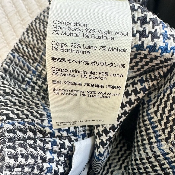 3.1 Phillip Lim straight leg pant trousers in herringbone plaid. Black, white, and blue. Perfect for work, office, special event.