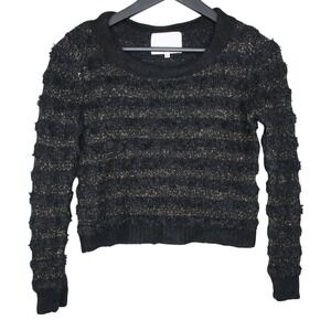 3.1 Phillip Lim Sweater Womens XS Black Metallic Gold Wool Mohair Blend Striped