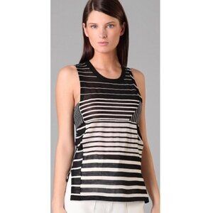 3.1 Phillip Lim Tank M Asymmetrical Striped Tie Back Wool Luxury Sheer