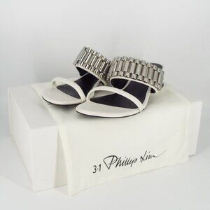 3.1 Phillip Lim White Leather Drum Watch Strap Sandals Size 39