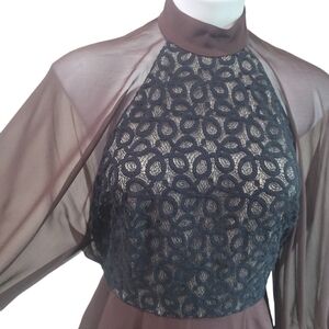 3.1 Phillip Lim Women Brown Cocktail Dress Women's Sz 2. Waist-26" chest-28". Side Pockets, Back zip, Sheer Ballon Sleeves, Knee length. Lace front detail and neck button closure. Please see photos for details. Minimal signs of wear. Unique and elegant. One of a kind found