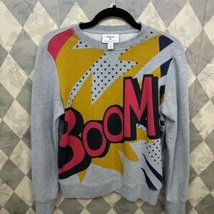 Add a bold pop-art vibe to your wardrobe with this iconic 3.1 Phillip Lim for Target “Boom” graphic sweatshirt! Designed in a comic book style with vibrant yellow, red, and black details, this gray pullover is a standout statement piece. Features a classic crew neck, soft cotton blend fabric, and an eye-catching front graphic. Worn by celebs and fashion lovers alike, it’s a must-have for collectors or anyone who loves playful, edgy style.