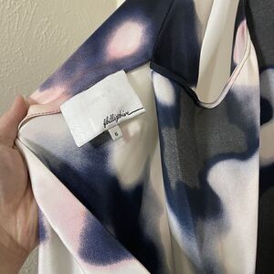 3.1 Phillip Lim silk blue ivory graphic abstract scoop back slip dress size 6