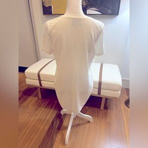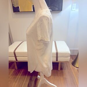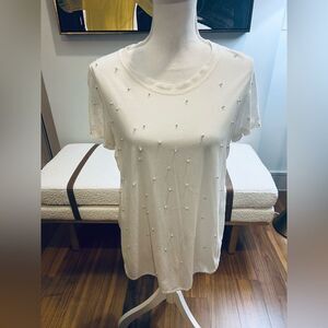 3.1 Phillip Lim cream, ivory, short sleeve blouse, pearl, and silver embellishments, this is an excellent condition, but it does have one missing embellishment that is not noticeable, 100 percent silk trim, and cotton body, very soft size 2.