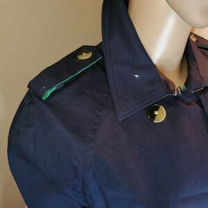 100% cotton fabric provides you with all-day comfort, and youll stay shielded from the elements, thanks to a rain flap, double-breasted button-front silhouette and belted waistline.