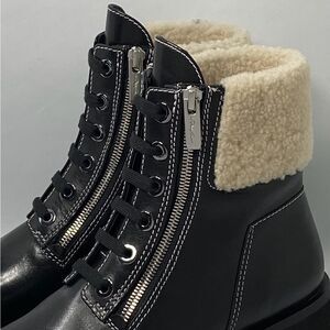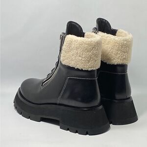 3.1 Phillip Lim Kate Zip Lug-Sole Shearling-Trimmed Leather Combat Boots size 39