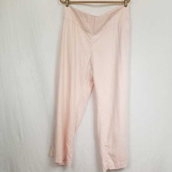 Excellent pre-loved condition. Highrise, wide leg and a beautiful pale pink. Back has wide elastic band for comfort and stretch.