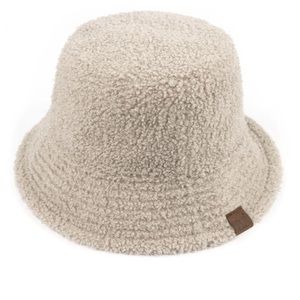 31. REVERSIBLE SOFT WHITE VEGAN LEATHER BUCKET HAT WITH SHEARLING TRIM NWT