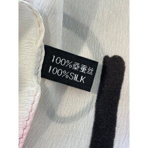 Elegant and luxurious 100% silk scarf featuring a detailed architectural staircase print in pink and black. The scarf measures 69 x 36.5 inches, offering a versatile styling option.