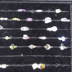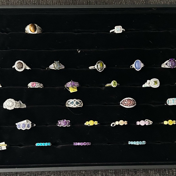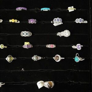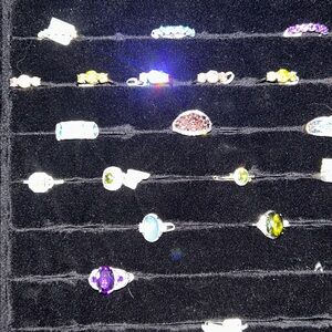All are Brand New some with Tags & some without! Some Silver & Some Rhodium!! Different Sizes! 31 in Total. (Ring Display Not Included) NO CALLOUTS Discover the elegance of this multi-color gemstone ring set. Perfect for adding a touch of color to any outfit.