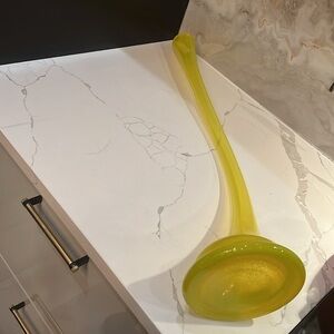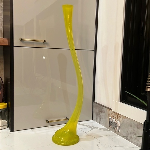 This is a beautiful 31” Yellow Chartreuse Curves Art Glass Vase - Handblown. No issues at all. Base 6.5”Wide