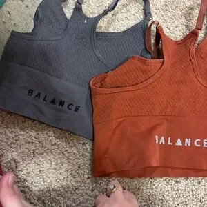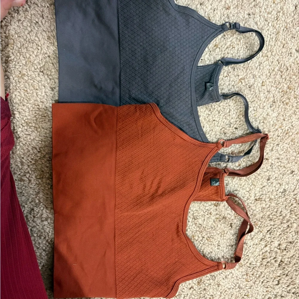 Comfortable sports bras with textured design. Adjustable straps for perfect fit. Ideal for workouts.