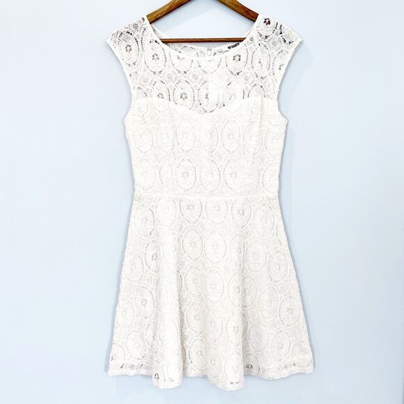 ๐ 3/$10 ๐ BB Dakota Fit & Flare Lace Overlay Dress Ivory Size 6 NEW