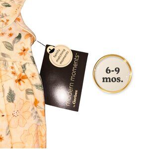 🌼Dress your little one in timeless style with this baby girl floral romper by Modern Moments from Gerber. Perfect for spring and summer, this adorable ivory one-piece outfit features a delicate yellow and orange floral print with soft green leaves. The sleeveless design with ruffle trim adds a sweet, feminine touch, while the elastic leg openings and snap-button closure at the crotch ensure all-day comfort and easy diaper changes.