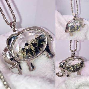 3-$10 Huge Rhinestone Filled Elephant Clear Window Pendant Necklace