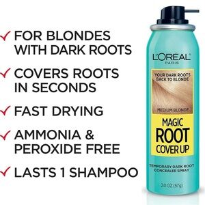 L'Oréal Magic Root Cover Up Temporary Dark Root Concealer Spray 2oz in the color Medium Blonde. Brand new, authentic. Two available for purchase.