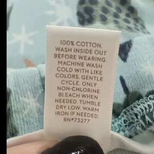 Light blue cotton pajama pants with all over green trees and snowflakes. Elastic waist. Only worn once. Cute and comfy and not just for Christmas!