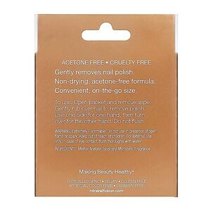 Mineral Fusion Acetone Free Nail Polish Remover Wipes. Three packets per box. Brand new, authentic, in box. Discontinued and very rare. Fifteen available for purchase.