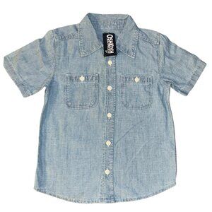 🍁3/$10 OshKosh Boys Chambray Denim Button Up Shirt Size 5T Short Sleeve Casual