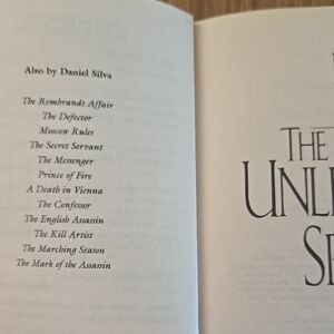 The Unlikely Spy, a thriller by NY Times bestselling author Daniel Silva. Features an intense WW2 espionage tale and contains excerpts from 'The Secret Servant.' In good pre-owned condition with some wear to cover. clean inside pages. from smoke-free, pet-free home. next day shipping.