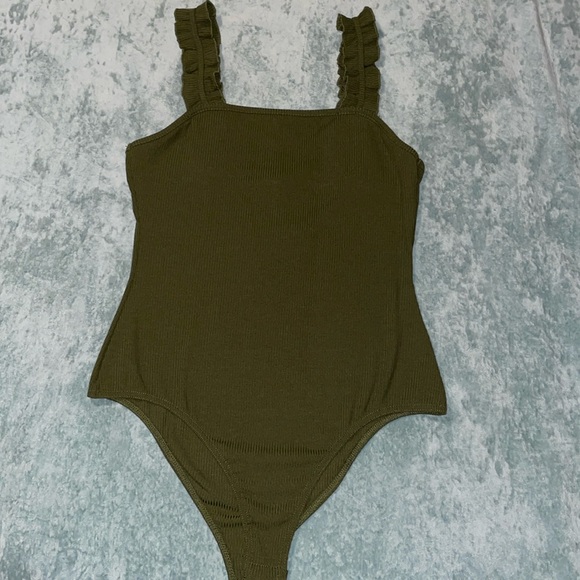 Olive green, snapped crotch, ruffled straps Select 3 items marked 3/$10 to get the 3/$10 discount