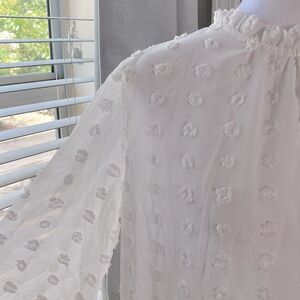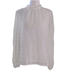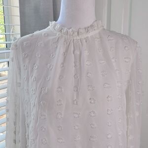 3/$10 Shein Swiss Dot Sheer Sleeves & Back Mock Neck Romantic Top | White | Medium