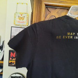 Awesome crew tee from The Hunger Game movie and book series featuring the classic mockingjay fireball logo against a black baclground that make the vibrant graphics really pop up. 'The Hunger Games' screenprint on front and 'May the odds be ever in your favour' on back. This tee is defintely cool!