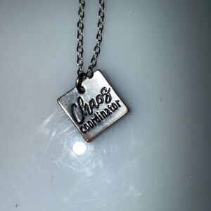 This is a very cute necklace. The saying is funny. It has been gently worn