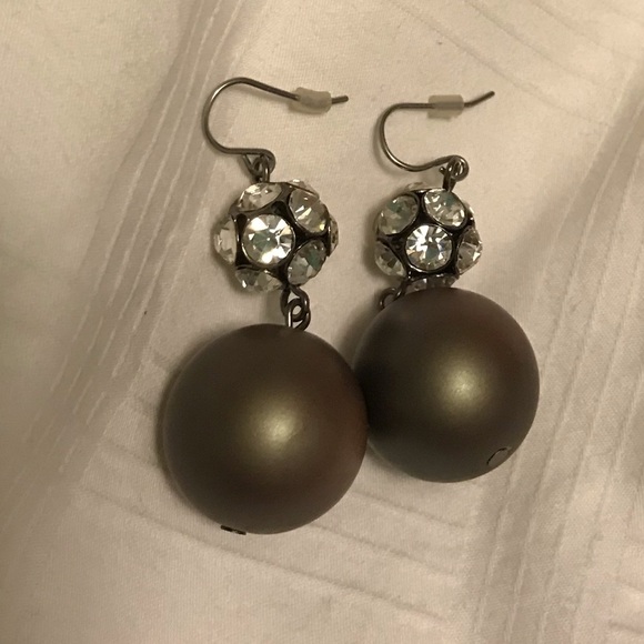 These make a statement at your event! Dangle earrings with rhinestone ball and gunmetal drop.