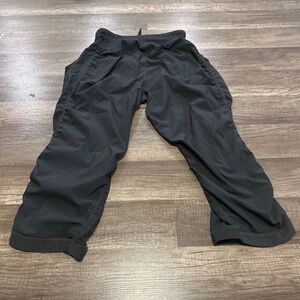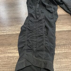 These cargo capris are in great condition and have been rarely worn. There are no stains or tears. The waist is adjustable, and the pockets are functional. The bottom has cinches up to make a triangular cut at the bottom of the pant leg. There is no tag, but it fits a small comfortably. A small medium may fit as well. All items come from a clean, pet free, smoke-free home/boutique. Please review these photos carefully as this is the exact item that will be shipped. Contact anytime for additional photos or questions. Items will ship between one to two business days.