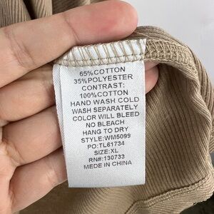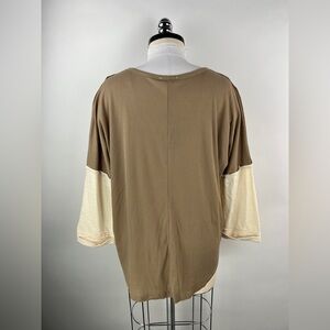Flowy Ribbed Top with button detail in Taupe, cream colors.