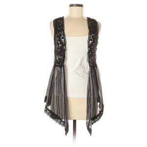Featuring open front, all over stripe print, crochet lace detailing front and trim. Polyester.