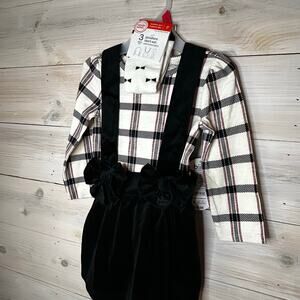 3/$12 2T Black Velvet Overall Dress with matching Long Sleeve Shirt and Tights