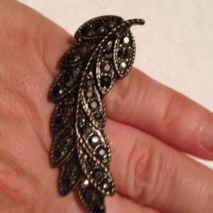 Antique gold, crystal encrusted 2 finger feather ring! Every stone intact! So unique!πŸ’•πŸ’•πŸ’•