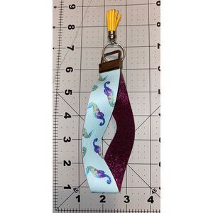 ☀️3/$12☀️ Glitter Sea Horse Faux Leather Keychain with Yellow Tassel