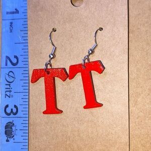 ☀️3/$12☀️ Letter “T” Earrings with Sterling Silver Hooks. (Red)