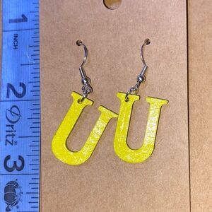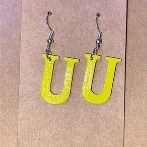 ☀️3/$12☀️ Letter “U” Earrings with Sterling Silver Hooks. (Yellow)