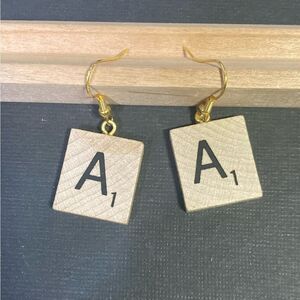 ☀️3/$12☀️ Letter “A” Scrabble Tile Earrings with Sterling Silver Hooks