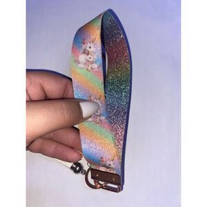 Unicorn Rainbow Faux Leather Keychain Wristlet.