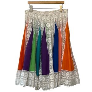 I made this skirt! π It is really a flexible size because of the elastic in the waist. Unstretched it is 10" but stretches up to 21" (see last 2 photos)! So really this would fit anyone from a size small to a size XL. Great as is for spring and summer or layer it up with leggings for the fall and winter! Lovely mustard yellow color.