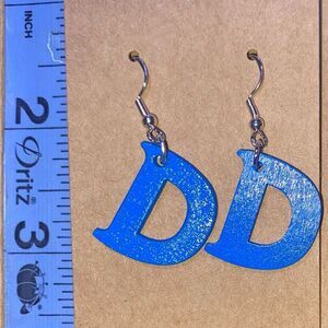 ☀️3/$12☀️ Letter “D” Earrings with Sterling Silver Hooks. (Blue)
