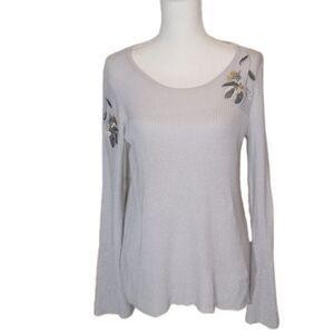St John's Bay, floral derail, knit bell sleeve sweater, Sz Small